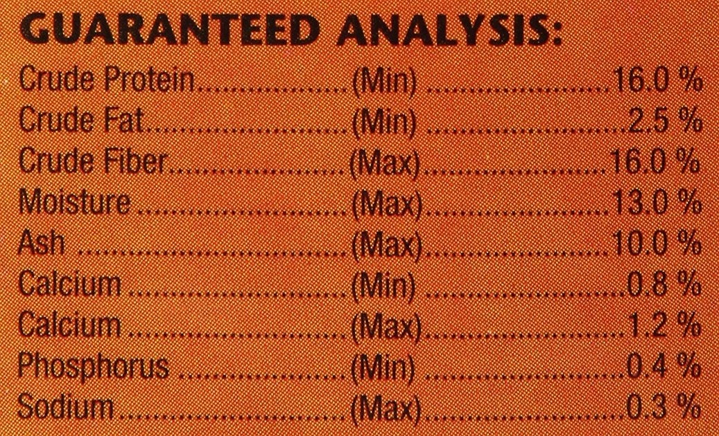 Suncured Alfalfa Meal, Dried Lima Beans, Rice Bran, Organic Soybean Meal, Wheat Middlings, Ground Whole Wheat, Escarole, Endive, Calcium Carbonate, Monocalcium Phosphate, Dicalcium Phosphate, Dried Dandelion Greens, Sodium Bicarbonate, Dried Lactobacillus acidophilus Fermentation Product, Dried Lactobacillus casei Fermentation Product, Dried Bifidobacterium bifidum Fermentation Product, Dried Enterococcus faecium Fermentation Product, Hydrated Sodium Calcium Aluminosilicate, Hydrolyzed Yeast, Brewers Dried Yeast, Yeast Culture, Yucca schidigera Extract, L-Ascorbyl-2-Poly- phosphate (source of stabilized Vitamin C), Garlic Extract, Anise Extract, Chinese Cassia Extract, Ginger Extract, Horseradish, Juniper Extract, Vitamin E Supplement, Zinc Methionine Complex, Mixed Tocopherols (a preservative), Rosemary Extract (added flavor), Ascorbic Acid, Citric Acid (a preservative), Lecithin, Choline Chloride, Vitamin A Supplement, Vitamin D3 Supplement, Niacin Supplement, d-Calcium Panto- thenate (source of Vitamin B5), Menadione Sodium Bisulfite Complex (source of Vitamin K activity), Riboflavin Supplement (source of Vitamin B2), Thiamine Mononi- trate (source of Vitamin B1), Pyridoxine Hydrochloride (source of Vitamin B6), Biotin, Folic Acid, Vitamin B12 Supplement, Zinc Oxide, Manganous Oxide, Ferrous Sulfate, Copper Chloride, Calcium Iodate, Sodium Selenite.
