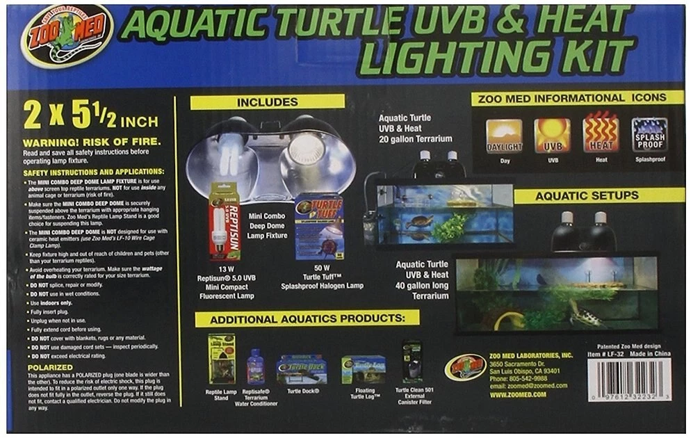 - Complete lighting and heating kit for aquatic turtles with two deep dome fixtures.