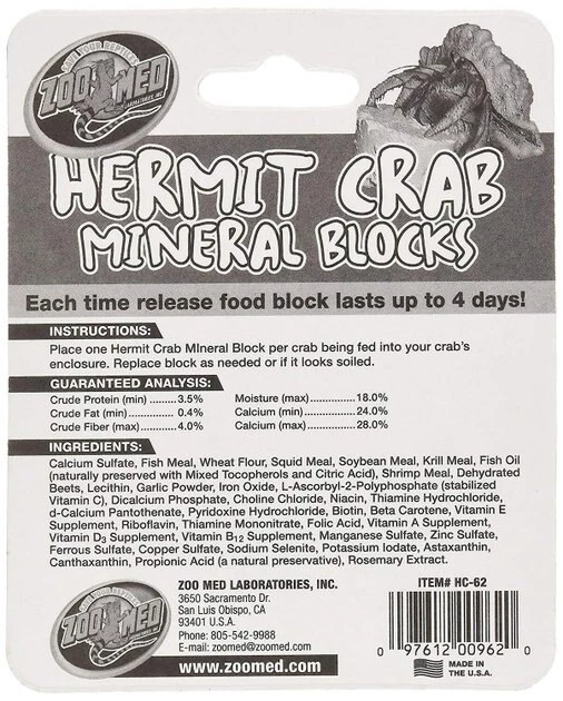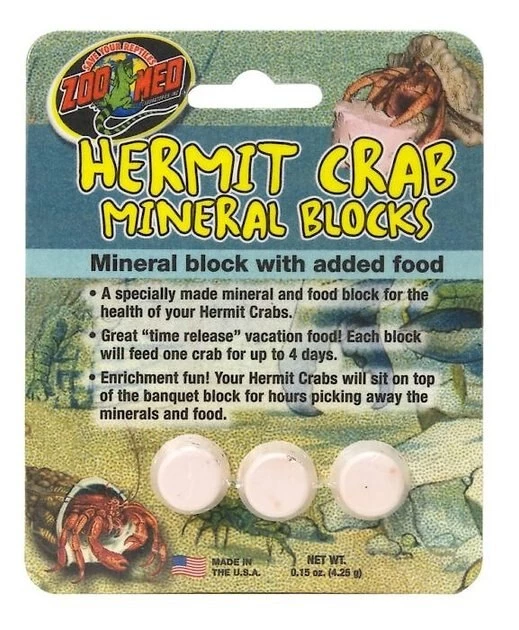 Give your hermit crab all the nutrition she needs with Zoo Med’s mineral block supplement. This pack comes with three round supplement blocks that slowly release minerals and food for your little companion to consume. Aside from beneficial minerals and vitamins, these supplements are crafted with nutritious ingredients, including fish meal, squid meal, krill meal, shrimp meal, dehydrated beats and garlic powder. Each block provides enough food for one hermit crab and for up to four days—making it the perfect addition to your pet’s enclosure while you’re on a weekend getaway.