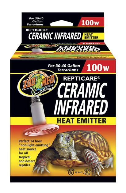 Keep your tropical or desert reptile warm and healthy with the Zoo Med Repticare Ceramic Infrared Reptile Heater. This coating-free porcelain heating bulb gives off an intense muscle-penetrating infrared heat while emitting no light. It’s made with a flat design to prevent excess heat buildup, making it more durable even with daily use. You can use it on arid enclosures or terrariums with high humidity to keep your reptile buddy nice, comfy, and at the perfect temperature that he needs. Plus, setting it up is easy as it screws into any standard porcelain incandescent socket and uses 100 watts of power.