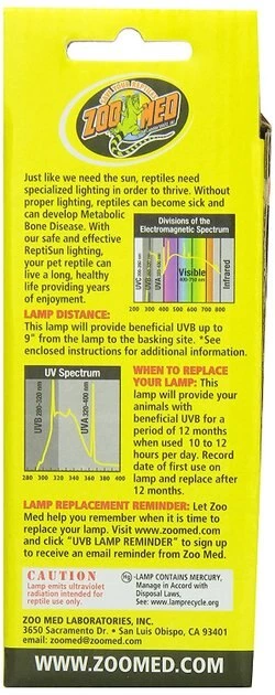 - Your lamp will provide beneficial UVB for a period of 12 months. After 12 months, the lamp should be replaced with a new ReptiSun 10.0 UVB Mini Compact Fluorescent Lamp. Before you turn your lamp on for the first time, date the base of the lamp to remind yourself when to replace it.