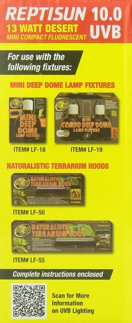 - Use to provide heat for all desert and basking reptiles and both UVB emissions to help prevent or reverse Metabolic Bone Disease and UVA emissions to increases feeding, mating, and other natural behaviors. Suitable for use with Mini Deep Dome Lamp Fixtures and Naturalistic Terrarium Hoods (not included).
