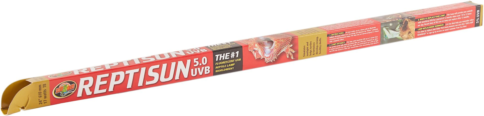T8 ReptiSun 5.0 is an award winning, industry standard, UVB lamp for reptiles. A full 5% UVB output allows vitamin D3 synthesis to occur naturally, preventing or reversing MBD and other health problems in turtles and tortoises, Bearded Dragons, Iguanas, and all other diurnal reptiles. The T8 ReptiSun 5.0 is effective for UVB induced photo conversion of vitamin D3 in reptiles skin at distances up to 12″.