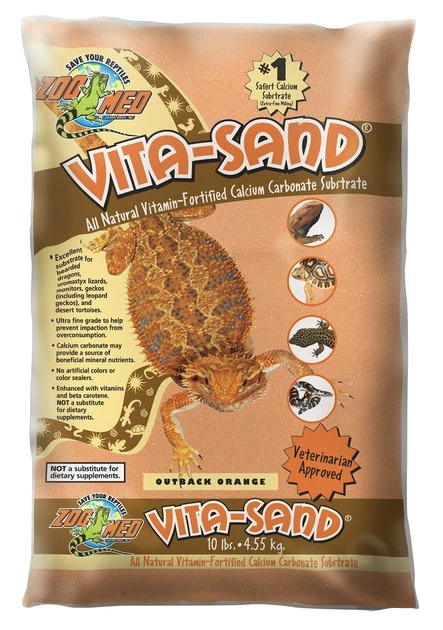 Zoo Med Vita Sand All Natural Vitamin-Fortified Calcium Carbonate Substrate provides a perfect base for your reptile friend. It is fortified with vitamins and beta carotene for increased health benefits for bearded dragons, uromastyx lizards, monitors, geckos (including leopard geckos) and desert tortoises. This substrate increases calcium delivery in all desert species of reptiles and does not contain fat-soluble vitamins, which can be toxic in large doses. With no artificial colors or color sealers, Zoo Med Vita Sand All Natural Vitamin-Fortified Calcium Carbonate Substrate is a healthy and safe option for your pet.